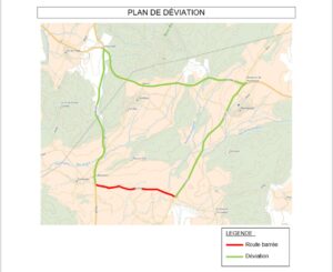 Fermeture temporaire de la RD 107 Dans le cadre de la mise en place d’un arrêté temporaire de circulation portant sur des mesures de fermeture de route avec déviation pour