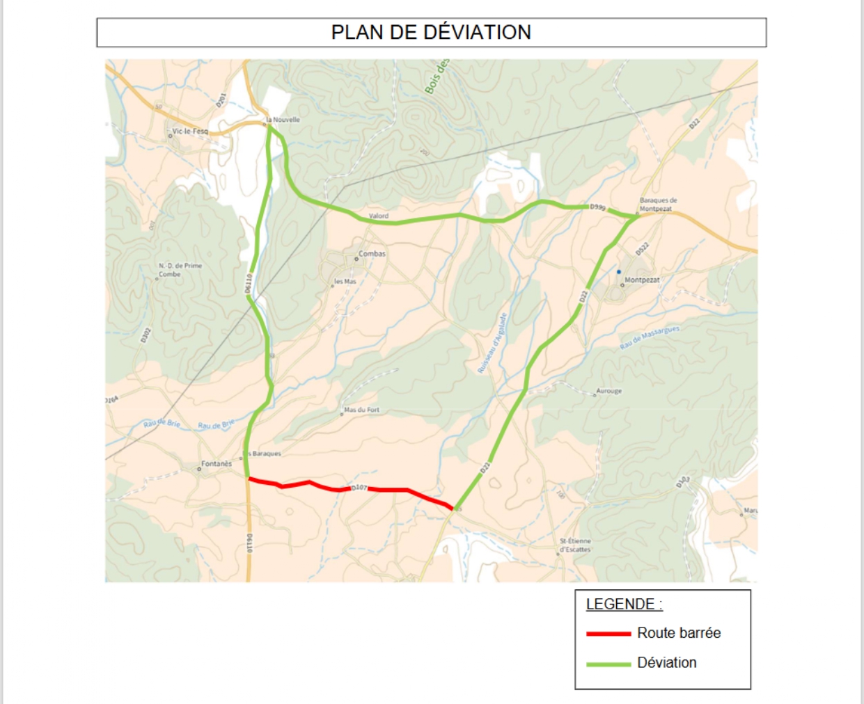 Fermeture temporaire de la RD 107 Dans le cadre de la mise en place d’un arrêté temporaire de circulation portant sur des mesures de fermeture de route avec déviation pour